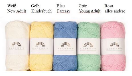 Über das Jahr hinweg häkeln wir unseren persönlichen Leseschal. Je nach Genre verwenden wir unterschiedliche Farben, und je nachdem, wie viele Seiten unser aktuelles Buch umfasst, wächst der Schal um die entsprechende Anzahl Reihen in der passenden Farbe.