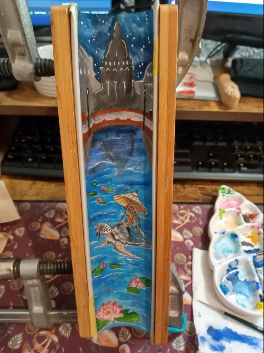 Dann wurde besagter Buchschnitt endlich fertig gemalt und ich habe vergessen, wie sehr ich wie ein Shrimp vor dem Tisch sitze bei sowas. 🤣 Nun fehlt noch das Fixativ. Eigentlich mache ich das immer auf dem Balkon, aber ich weiß nicht, wie die Minusgrade da wirken. Vermutlich muss ich mir mal einen größeren Karton dafür nehmen. Immerhin will ich wissen, wie es dann ausgepackt aussieht. ♥